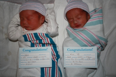 ![]() Woo Family: Party of Five [Posted on 06 December 2009] We are pleased to announce the birth of Tavin and Kale Woo born at approximately 7:30pm on Nov 30th. Tavin weighed in at 6lbs 6oz and Kale came in at 4lbs 11oz. Mom is resting up, dad is planning for the next 5 years, and Rykan can't wait for T&K to quickly grow up to be fun playing partners. Pictures capturing Tavin and Kale's first few weeks of life will be available in the "Online Photos" section (link to the left). Cheers, The Woo Family