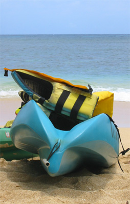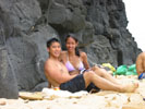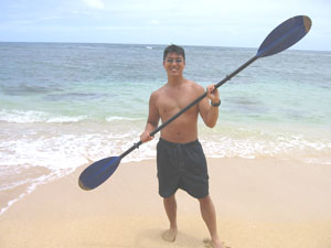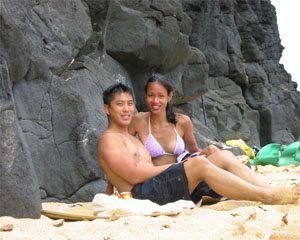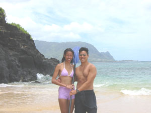 ![]() Our Honeymoon - Kauai, Hawaii 30 June 2002 through 06 July 2002 After all the partying from the night before in Lihue, we woke up early the next morning (July 5th) in excited anticipation of what was to follow that day: sea kayaking adventures along the north coast!! A few days before, we had signed up for a half-day snorkeling and kayaking trip with Kayak Hanalei, which is a family run business owned by Dave and Goldie Stewart. Dave (pictured below) gave us a quick overview on how to handle and maneuver our kayak; we were fast on our way. Dave led the journey, regaling us with history and background on the tropical island of Kauai. Along the way, we were even able to catch a glimpse of the large resort which was to be our home for the night: the Princeville Resort (pictured below). After a few hours of paddling and sight-seeing along the coast, we took to the shores and enjoyed a delicious picnic Goldie had packed earlier that day complete with sandwiches, apple bananas, cookies, and bottled water. After lunch, a bunch of us snorkeled nearby and enjoyed the wonderfully scenic view surrounding us. Here are more pictures from our honeymoon in Kauai, Hawaii (below). To view a bigger version of the pictures below, simply click on the thumbnail.