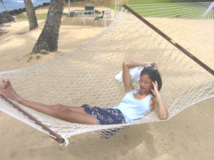 ![]() Our Honeymoon - Kauai, Hawaii 30 June 2002 through 06 July 2002 Here are some tips we've garnered as a result of our experiences together in Kauai these past few days (below). Enjoy and happy vacationing!! Must have: "The Ultimate Kauai Guidebook" (Everything they say in the guidebook, from activities, to where to eat, to what to avoid, is true.) In search of the sun: If it's raining on your part of the island, drive to the west shores to get the sun. (It almost never rains on the west shore.) Thanks to Mike the local fisherman for that Kauai weather tip. Cheapest place for gas: Shell station in Puhi or Hanamaulu Shell Best shaved ice: Joe-Jo's clubhouse (in Waimea) 60+ flavors (ask for macademia nut ice cream on the bottom) Best cheap "local" food: Hamura's Saimin Stand, cheap hole in the wall with decent portions of hot soup noodles. (Ask for "the special." Most locals love this. Homemade pie is light and tasty too.) Waitresses aren't chatty, but have great memories. You never see them write orders down. Hamura's is located in Lihue on Kress Street (take the 50 to Lihue, make a right onto Rice and another right onto Kress Street. We didn't try out Roy's (breakfast), Piatti's or Keoki's b /c we wanted to test out local cuisine instead of touristy places. Best Boat/Snorkeling Trip: Kauai Fun (New double 250 hp Yamaha Engines) Kauai Fun is run by a local father-son team They don't advertise much, so the only way to find out about them is through word of mouth or to sign up is through the following: 1) directly through them or 2) indirectly through Brennecke's Activity Center. Kauai Fun takes a small boat (seats only 14 spots and those spots fill up quickly). They only run once a day (8am - 1pm+) for 5-6 hours, unlike bigger run, more commercialized boats that go twice per day. Difference between Kauai Fun and Big Boat companies: Kauai Fun is the cheapest you can find. Basically, all boat/snorkeling packages go along the same routes and feed you lunch. The Big Boats can't take passengers into small caves; Kauai Fun's boat is small enough to take passengers deep into caves. Kauai Fun's boat never breaks down b/c they service it after all trips. If a big boat breaks down, the company that owns the big boat will most likely take the boat to Kauai Fun to get their boat fixed b/c not only does Kauai Fun perform its own servicing in-house, they also service other local business boats as well. Denis, who doubles as Dave's father and Kauai Fun's narrator (tells the best stories b/c he has lived in Kauai all his life. If you want to experience things through a local's eyes, definitely check them out. (They are also the only ones certified to take the boat out at night. No one else can do night-boating.) If you go for Kauai Fun, be sure to tell Dave & his father Denis that "The Woos" sent you!! Where to shop for groceries: Wal-mart near Lihue, or Cost-You-Less near Kapa'a, or Big Save. Fruits & Veggies cost a lot though & aren't that fresh. Try buying fruits & veggies at "Fresh fruit" stands, run by local farmers. Best place for souvenirs: (i.e. Mauna Lona chocolate macadamia nuts ::under $11 for about six packs:: or sarongs or snorkel gear, etc) Wal-mart - it's cheap there, trust us. Exploring the Island: Driving to Wamea Waterfalls (seen in the opening scenes of Fantasy Island), isn't too bad; neither is the drive to the 'Opaeka'a Falls, but we don't recommend driving to the Keahua Arboretum unless you have a four by four if it is rainy b/c you can get stuck in the dirt roads. Plus, the Arboretum hasn't been maintained for a while; when you get there, there's not much to see. Best Secluded Beach: Take the 50 & head west towards Waimea. Between Mile Marker 21 and Mile Marker 22, you'll notice some local cars (i.e. trucks) parked on your left. There are usually three or four just parked along some trees on the highway. Park behind them and walk along the trees to a hidden path. If you follow the path for about 2-3 minutes, you'll hit the beach. Climb up to your left & there, you'll see a private, secluded beach to relax in. The beach is owned by the Robinson Family (sugar plantation), but locals love using this spot for surfing and boogy-boarding. Other Secluded Beach Spots: take Poipu Road & head east (Past golf courses) keep heading along dirt road. At the end (T-intersection) take a right until you get to the end, then take a left. After a few minutes, two quiet, secluded beach spots will be on your right. Special Note: be sure to leave before 5pm. They close the gates during then. Beach Hint: Driving along Polihale's dirt road to get to the beach is awesome, but if you get stuck in the sand & a guy comes out, offering to get you out for $75, pay it. If you don't, he'll step back, take a digital photo of you & email it to your rental car office. They'll get a clear view of you, your car, its license plate, and a shot of you on the dirt road. If you read your rental agreement, it says you can only drive on paved roads. When you return your car, you can expect to pay a hefty fine ($275+) & cleaning fee of cars w/excessive mud or sand. Best bet: if stuck, pay the $75. It'll save you money and hassle. Also: wash your car down if it has a lot of mud before returning to avoid "excessive dirt" charges. (This hint courtesy of Dave from Kauai Fun.) Final Words of Advice: Take the time to talk to locals (not the ones who work in the travel industries like hotel clerks or people working at tour booths) to get the best ideas of what to do & how locals really live. Most are modest, humble, & really friendly. Most tourists seem to be from California. Have fun & relax. Don't stress or get mad if it's hot or you're running late for an activity. You're on vacation! If you miss something, there's always time to revisit. Make do w/what you have & move on and forget about it. Mr and Mrs Woo Here are more pictures from our honeymoon in Kauai, Hawaii (below). To view a bigger version of the pictures below, simpl