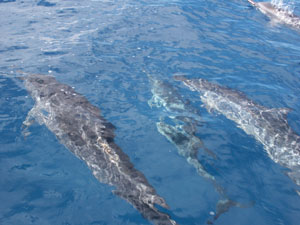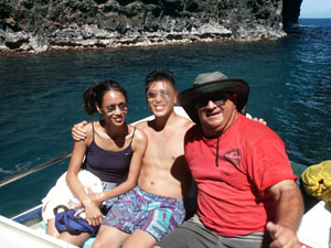 ![]() Our Honeymoon - Kauai, Hawaii 30 June 2002 through 06 July 2002 We decided to tour the north and west coast of Kauai by signing up with Kauai Fun for a half day filled with lunch, snorkeling and a boating tour to boot. Kauai Fun is a small, family business run by Dave Baptiste and his father Denis Baptiste (pictured with us above). Denis told the most entertaining stories while Dave carefully maneuvered us along scenic routes and tiny, wonderous caves along the north and west coasts of Kauai. It was during this trip that Florence realized she was prone to sea-sickness, but that braving the rocky waters was worth it, in the end for unbeatable views of the ocean and playful dolphins (below), one of which was a survival of a shark attack. You can still see the white area where the dolphin was bitten, if you look closely enough. Here are more pictures from our honeymoon in Kauai, Hawaii (below). To view a bigger version of the pictures below, simply click on the thumbnail.
