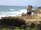 ![]() Our Honeymoon - Kauai, Hawaii 30 June 2002 through 06 July 2002 We decided to set a goal during one of our afternoons of exploring, to try to see how far we could drive up Mount Wai'ale'ale towards "The Garden Isle" (aka "The Separate Kingdom"), located in the center of Kauai (pictured above). It is no surprise that with an average of 485 inches of rain per year, this designation also happens to be the wettest spot on earth. As our journey took us closer and closer to our goal, intense rain, flooded waters (pictured below), and muddy, slippery paths prevented us from getting to our actual destination (we like to think that we came close, nevertheless). We opted to change paths and take a drive towards less-rain-beaten paths around the island instead. Along our drive, we stopped at the Wailua River State Park to take a picture of the water fall which was used to film the opening of television show Fantasy Island. We also stopped off at the Kilauea Lighthouse, a national historic lighthouse and bird sanctuary. There was a box at the front of the lighthouse requesting a $2 donation, but since we both had neither enough loose change nor small bills at the time, we simply by-passed the box and stole a quick picture (below) to capture this daring moment in time. Here are more pictures from our honeymoon in Kauai, Hawaii (below). To view a bigger version of the pictures below, simply click on the thumbnail.