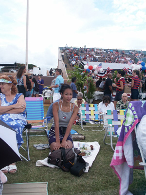 ![]() Our Honeymoon - Kauai, Hawaii 30 June 2002 through 06 July 2002 We decided to spend our very first Fourth of July together as a married couple with the rest of the Kauai inhabitants at the Annual Concert in the Sky Event, held each year at the Vidinha Stadium in Lihue, Kauai. The annual event (pictures below) which draws over 8,000 people (both local and tourist) each year, is one in which a stunning display of fireworks, local food, crafts and live entertainment are provided in celebration of our nation's independance. With mouth-watering food provided by generous restaurants, music provided by local Hawaiian bands, and many other events taking place throughout the day, this event was definitely a festive way to celebrate the fourth! Tickets only cost approximately $10.00/person ($7.00/person for advanced purchase). Proceeds from this annual festival went to benefit the local hospice. The event was so exciting and exhausting, that some people (Paul included) had to take a nap before the fireworks show began later that night. Here are more pictures from our honeymoon in Kauai, Hawaii (below). To view a bigger version of the pictures below, simply click on the thumbnail.