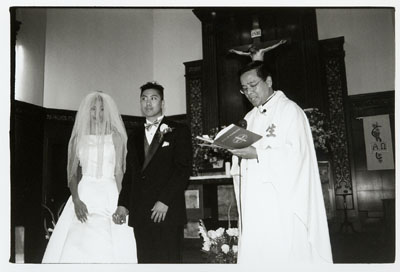 Florence and Paul listen intently (... well ... Florence listens intently anyhow ... ) while Father Dominic Lee passes on a few words of wisdom.
