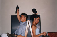 ![]() The Prelude After the church rehearsal, a small party of guests headed over to Linda and Thomas' house where we entertained everyone with pre-marital games and fun activities. Here is a shot of us answering questions (by holding the other's shoe) and raising the shoes to submit our answer. In this shot, both Paul and Florence have opposite answers. (It's complicated to explain, but I think we were pretty successful at entertaining everyone and making fools of ourselves.) ![]() |