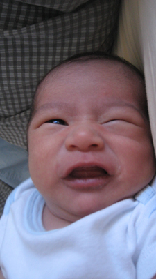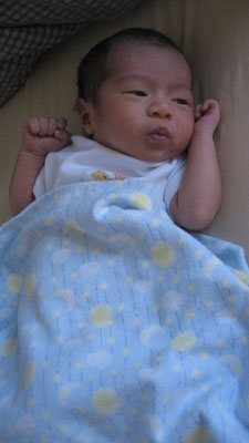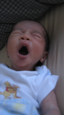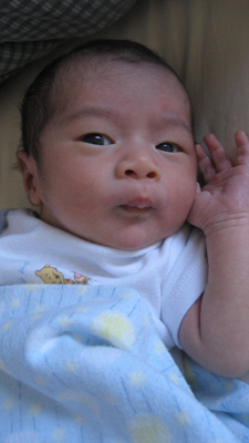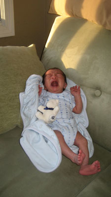 ![]() ![]() Day Sixteen - Gaining More Weight and Getting Taller 27 December 2007 After being forced to pose on the couch for a photo (above), which he was unhappy about, Rykan spent Day 16 relaxing in preparation for his pediatrician appointment later that day, where he found out that he now measured 20 1/4 inches and weighed 7lbs, 2oz (Rykan gained almost one full pound over his initial birth weight)!! Rykan spent some quality time getting to know his brand new bouncer later that evening.