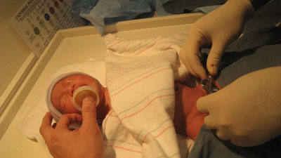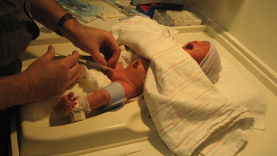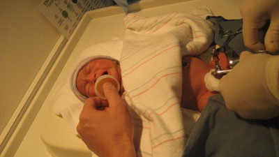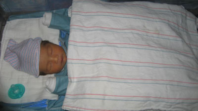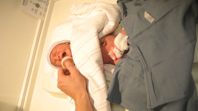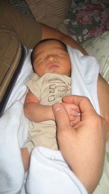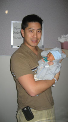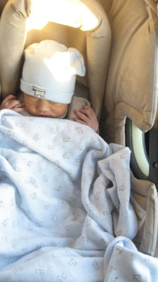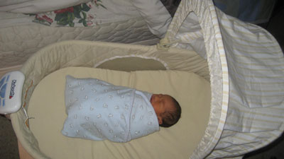 ![]() ![]() Day Three - Homeward Bound 14 December 2007 After spending more time in the bilibed, Rykan was given his circumcision by Dr. Thomas Van Geem (ouch) while papa Paul tried unsuccessfully to take Rykan's mind off of the pain by administering some sugar water via a pacifier. Once the circumcision procedure was complete, papa Paul and momma Florence dressed Rykan in his first outfit to go home in. The car ride home kicked off to a slow start as papa Paul was unfamiliar with how to place Rykan into the infant car seat (momma Florence had to step in to show papa how to correctly place Rykan into the infant car seat). As soon as Rykan arrived home, Rykan promptly fell asleep in his bassinet (pic above) due to the exhausting day he had!