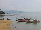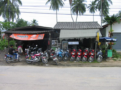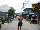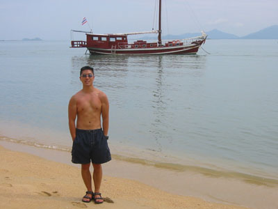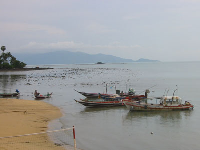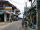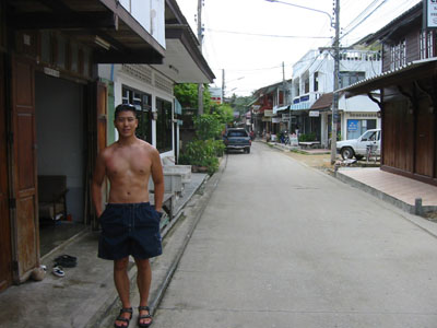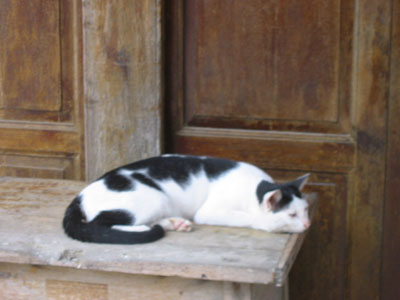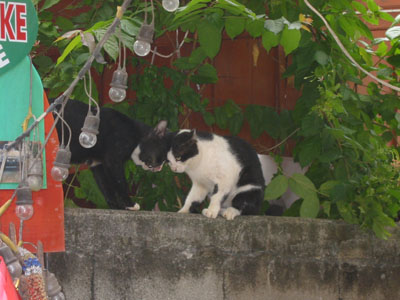 ![]() 2003 - Koh Sa Mui, Thailand 27 July 2003 - 01 August 2003 Bo Phut Each morning, after breakfast, we would walk along the two kilometer beach towards Bo Phut (pronounced "Boe Poo"), originally inhabited by local fisherman and known as the sleepy Fisherman's Village. One of the oldest villages on Samui, Bo Phut's tiny stretch of the north shore of Samui offers a quiet sense of old-world charm and peaceful solitude nowhere to be found on nearby Chaweng Beach. A dozen high quality restaurants, bistros, and small bars dot this village's single, one lane waterfront road, interspersed with wooden Chinese shop houses, giving the place the look of a movie set for some Asian adventure film. Visiting sailboats, Chinese junks, classic Thai longtails, and wildly painted fishing boats dot the bay. Separated from the main ring road which circles the island, the Fisherman's Village is where the crazy pace of Samui's traffic slows to a walk, where street vendors, chic cafes, smiling old ladies, sleepy cats (pictured below) scuba tours and inter-island travellers disembarking on a rickety wooden pier all come together. This part of the island is an ideal location for anyone looking for a bit of beachside serenity and good clean fun. During one of our daily strolls, we noticed an eerie, alien-like howling sound which broke the peaceful morning silence. After some sleuthing, we came across the origin of the mysterious sound: two cats (pictured below), positioned in tense, fighting positions, howling at each other. Paul snapped a quick picture of the cat stand-off (neither cats seemed to notice) and we were soon on our way, continuing our explorations of this otherwise peaceful island paradise. To view a bigger version of the pictures below, simply click on the thumbnail.